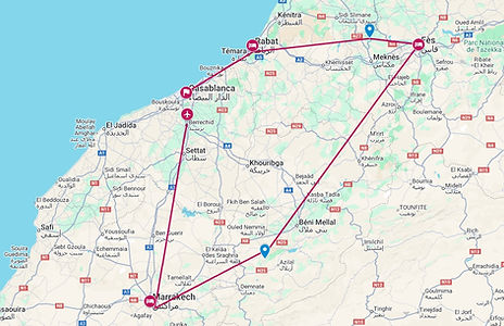 ๐Ÿ•Œ Day 1: Casablanca โ€“ Gateway to Modern Morocco "Where the Atlantic meets the minarets." โ€ข Welcome at the airport and transfer to your hotel โ€ข First steps in the city: between Art Deco and living traditions ๐Ÿ• Overnight: Hotel in Casablanca ๐ŸŒ† Day 2: Casablanca & Rabat โ€“ Two Faces of the Kingdom "The breath of the ocean, the wisdom of the palaces." โ€ข Visit the central market, the Habous district, and the Hassan II Mosque โ€ข Drive to Rabat, a peaceful and refined capital ๐Ÿ• Overnight: Hotel in Rabat ๐Ÿ› Day 3: Rabat, Volubilis & Fez โ€“ From the Roman Empire to the Andalusian soul "Ancient stones, secret gardens, and the eternal medina." ยป โ€ข Discover Rabat: Hassan Tower, Oudayas, Royal Palace โ€ข Explore the Roman ruins of Volubilis โ€ข Arrive in Fez, a mystical city ๐Ÿ• Overnight: Riad in Fez ๐Ÿงญ Day 4: Fez โ€“ A labyrinth of history and knowledge โ€œEvery alley whispers a thousand-year-old past.โ€ โ€ข Visit the medina, the tanneries, and the Royal Palace โ€ข Traditional lunch in the heart of the old city ๐Ÿ• Overnight: Riad in Fez ๐ŸŒŠ Day 5: Ouzoud Waterfalls โ€“ Nature and wonder โ€œThe water sings, the monkeys dance, the silence breathes.โ€ ยป โ€ข Route to the waterfalls nestled in the Atlas Mountains โ€ข Stroll along the falls and enjoy lunch on a terrace โ€ข Continue to Marrakech ๐Ÿ• Overnight: Riad in Marrakech ๐Ÿฎ Day 6: Marrakech โ€“ The Radiance of the Red City โ€œArt, life, sublime chaos.โ€ โ€ข Visit the Bahia Palace, the Saadian Tombs, and the Koutoubia Mosque โ€ข Immersion in the souks and Jemaa El Fna Square โ€ข Break in the Majorelle and Menara Gardens ๐Ÿ• Overnight: Riad in Marrakech โœˆ Day 7: Departure โ€“ Morocco in the Heart โ€ข Leisurely breakfast before transfer to Casablanca *Fully customizable trip