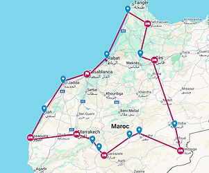 ๐ Day 1: Casablanca โ First Beats of the Journey "The salty breath of the ocean, the gateway to a new world." โข Airport reception and transfer to the hotel โข Rest before departure ๐ Overnight: Hotel in Casablanca ๐ Day 2: Casablanca โ Between Modernity and Memory "Glass and Marble, Prayers and Markets." โข Visit the Central Market, Royal Palace, and Hassan II Mosque ๐ Overnight: Hotel in Casablanca ๐ Day 3: Rabat, Asilah & Chefchaouen โ Capital and Blue Pearl "From the ramparts to the celestial blue, art and peace along the way." ยป โข Hassan Tower, Kasbah of the Oudayas, stop in Asilah โข Route to Chefchaouen ๐ Overnight: Riad in Chefchaouen ๐งญ Day 4: Volubilis, Meknes & Fez โ Ruins and Royalty "The past engraved in stone, the imperial soul as a legacy." โข Roman ruins, Bab Mansour, royal mausoleum โข Arrival in Fez ๐ Overnight: Riad in Fez ๐ฟ Day 5: Fez โ Secrets of the Medina "Craftsmanship murmurs, the souks breathe, history lives." โข Attarine Medersa, Nejjarine Fountain, Karaouine Mosque ๐ Overnight: Riad in Fez ๐ Day 6: Towards Merzouga โ Desert Road "Cedars, palm trees, and golden dunes. ยป โข Crossing the Atlas Mountains, Ziz Valley โข Camel at sunset ๐ Overnight: Desert camp ๐ Day 7: Merzouga, Todra & Ouarzazate โ Reliefs and lights โThe sun rises, the cliffs rise.โ โข Sunrise, Todra Gorge, Dades Valley ๐ Overnight: Hotel in Ouarzazate ๐ฏ Day 8: Aรฏt Benhaddou & Marrakech โ Fortresses and peaks โFrom legendary kasbahs to the peaks of the Atlas Mountains.โ โข Visit to the listed site, Tizi nโTichka Pass ๐ Overnight: Riad in Marrakech ๐ฎ Day 9: Marrakech โ Magic and majesty โThe pulse of Morocco beats here.โ ยป โข Koutoubia Mosque, Bahia Palace, souks, and Fantasia show ๐ Overnight stay: Riad in Marrakech ๐ Day 10: Essaouira โ Sea Breeze and Freedom "Where the wind sings and the walls whisper." โข Drive to Essaouira, medina, and dinner at the port ๐ Overnight stay: Riad in Essaouira ๐ Day 11: Return to Casablanca โ Memories along the way "From the coast to the city, memories come together." โข Stops in Safi and El Jadida ๐ Overnight stay: Hotel in Casablanca โ Day 12: Departure โ Morocco in the heart โข Transfer to the airport and a warm farewell *Fully customizable trip
